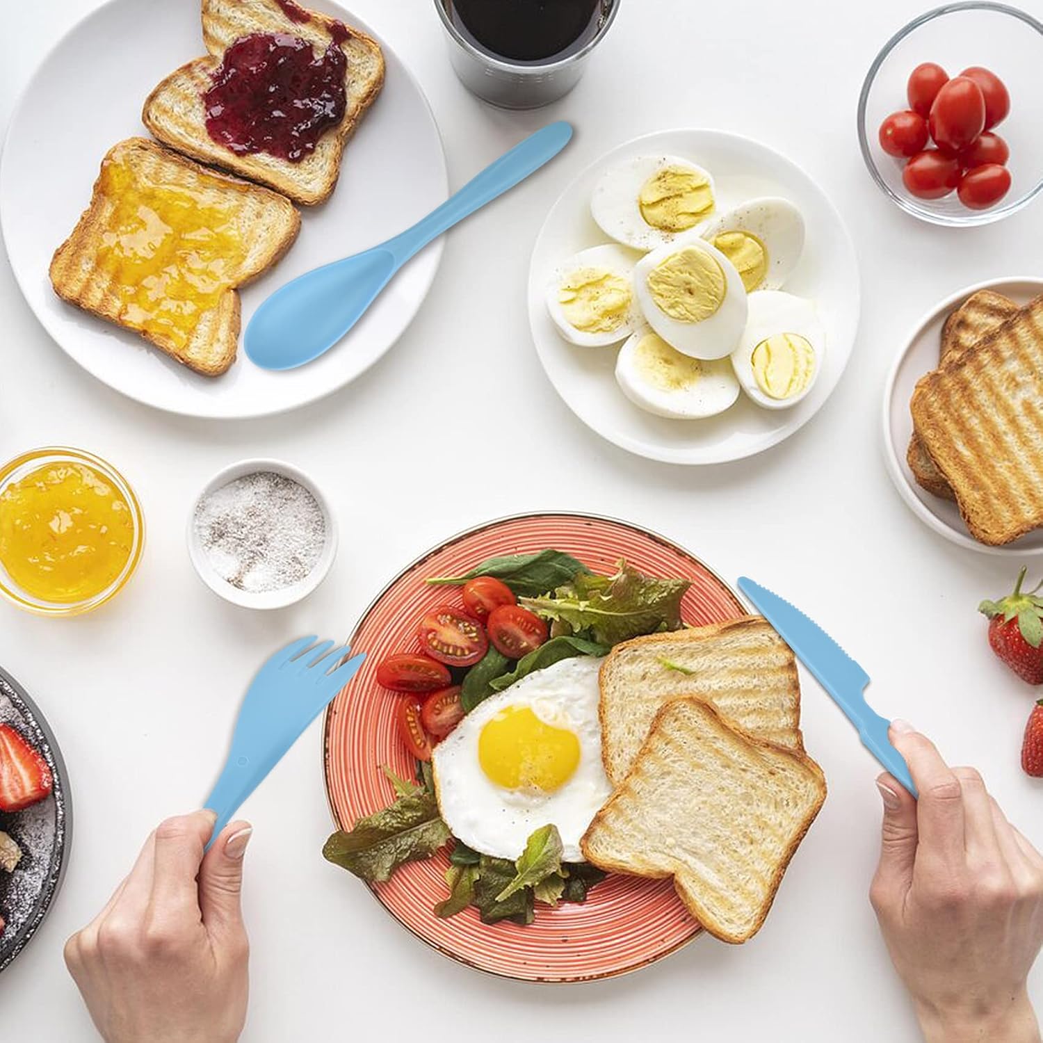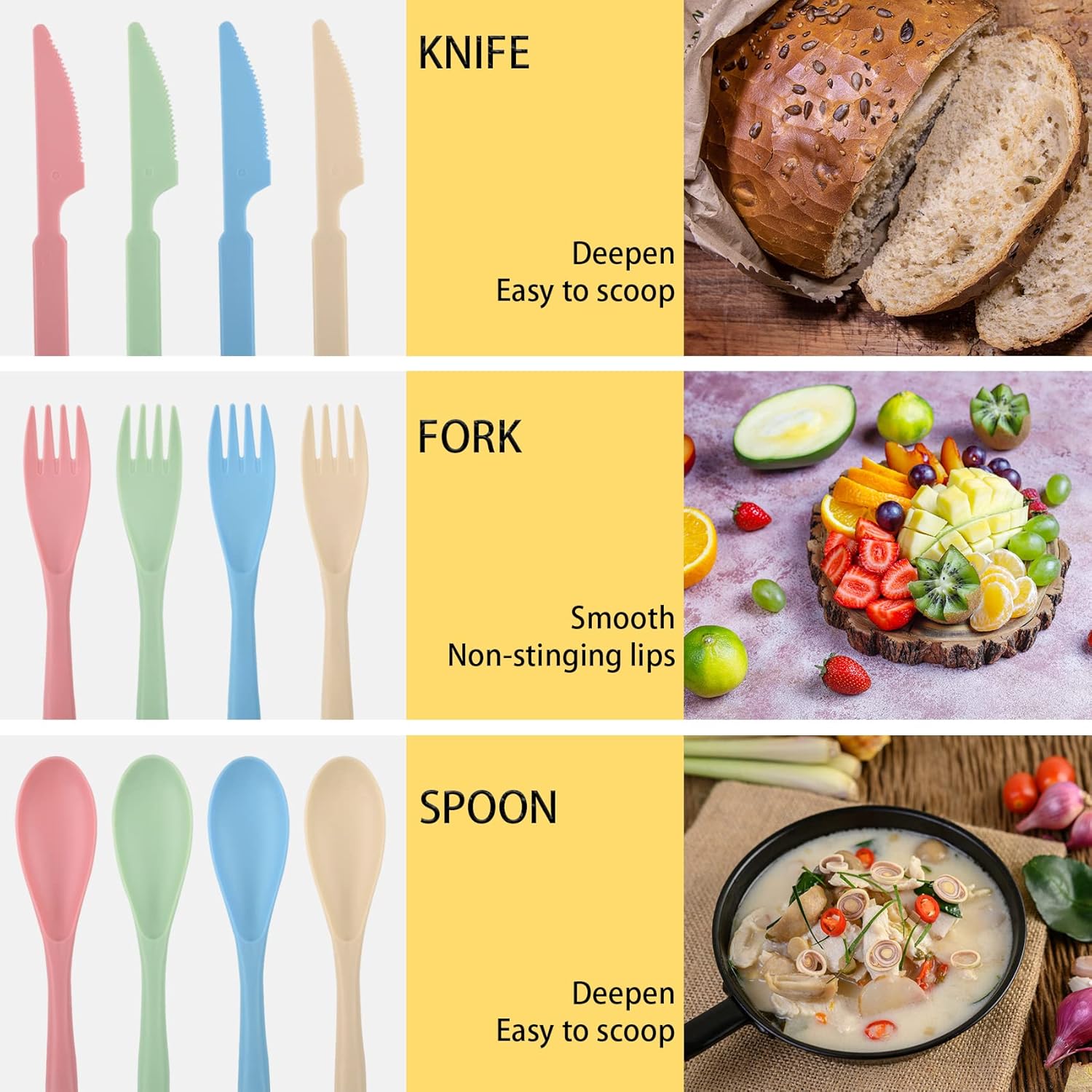 - 【Portable Utensil】Camping utensils is made of PP material, which is friendly for your family. Travel cutlery is lightweight and durable, not easily broken when dropped from high places, making it the perfect companion for outdoor activities.